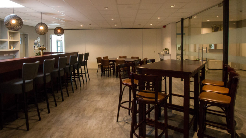 Met een schuifwand betrek je eenvoudig de bar bij de zaal en via de dubbele terrasdeuren stap je zo het besloten terras op – ideaal om je activiteit extra sfeer te geven.